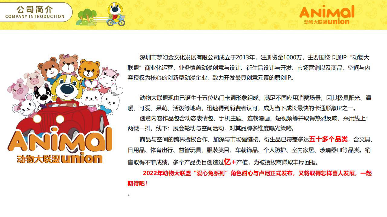 动物大联盟现由已诞生十五位热门卡通形象组成,满足不同应用消费场景,因其阳光、温暖、可爱、呆萌、活泼等地点,迅速得到消费者认可,成为当下成长快的卡通形象IP之一。