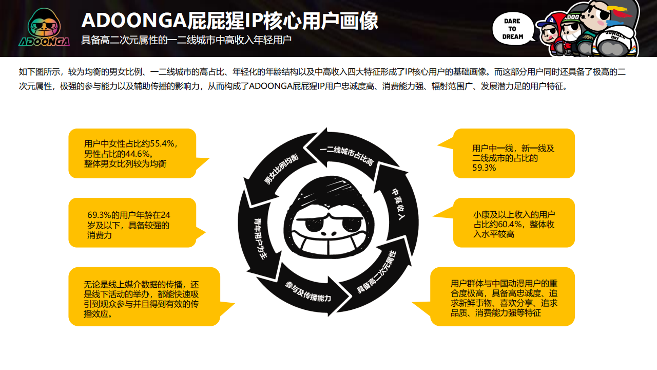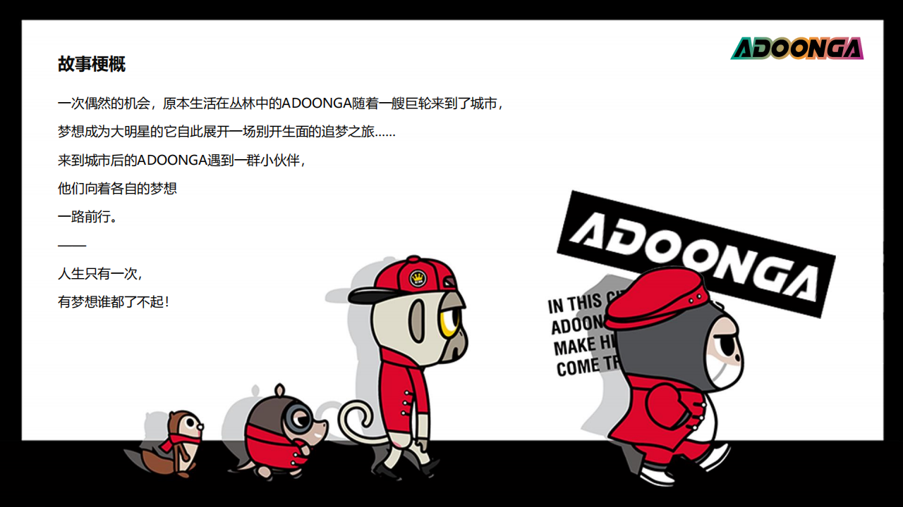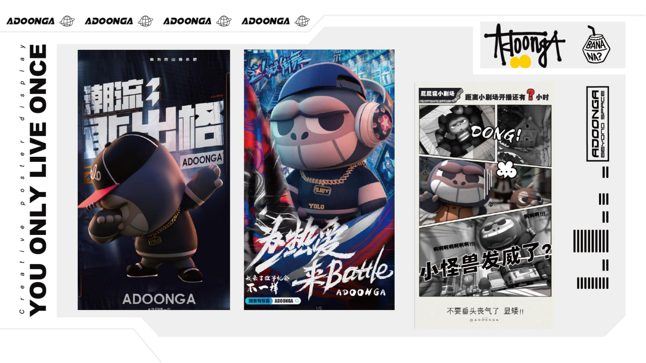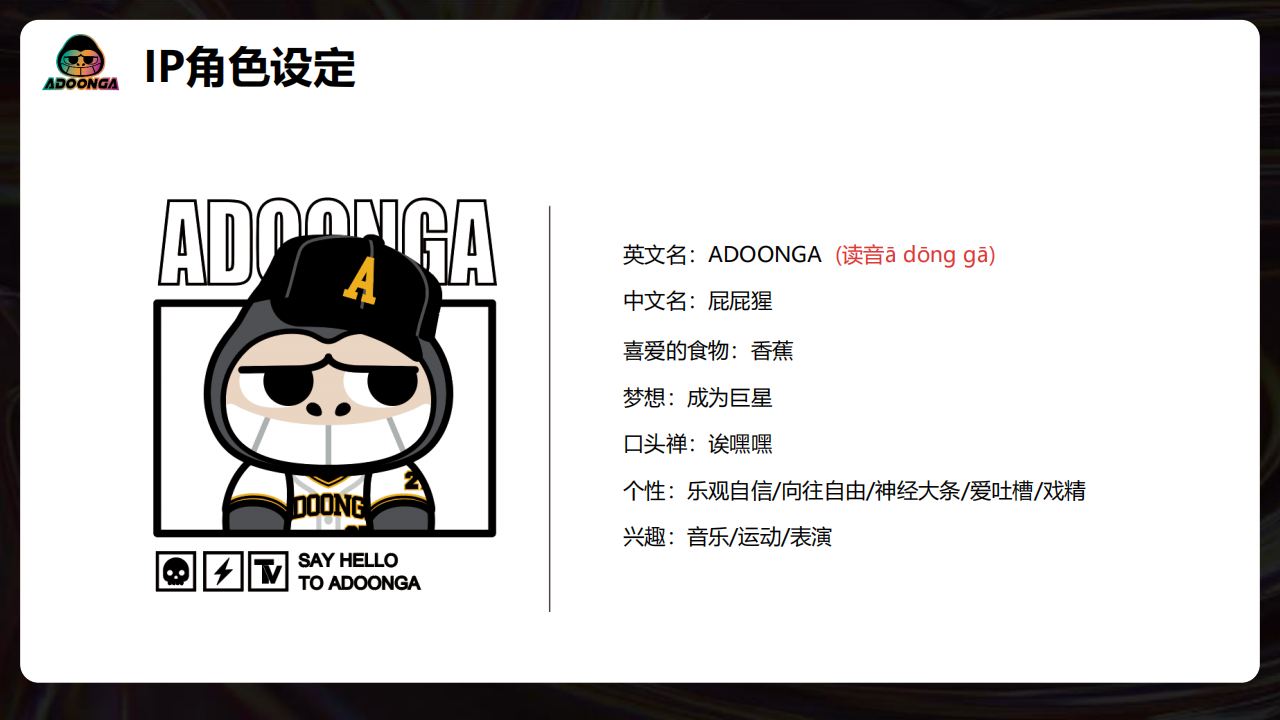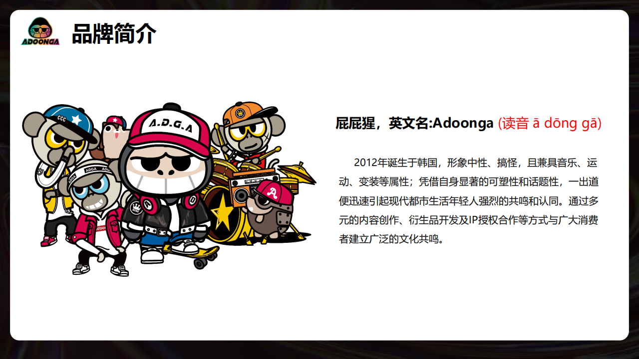 诞生与韩国的屁屁猩,形象中性,搞怪,兼具音乐、运动、变装等属性;凭借自身显著的可塑性和话题性,一出道便迅速引起都市生活年轻人的强烈共鸣。