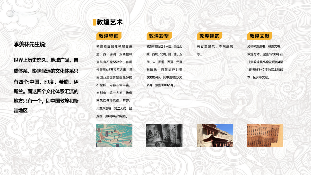 敦煌文化是各种文明长期交流融汇的结晶。 展示了中华民族的文化自信。