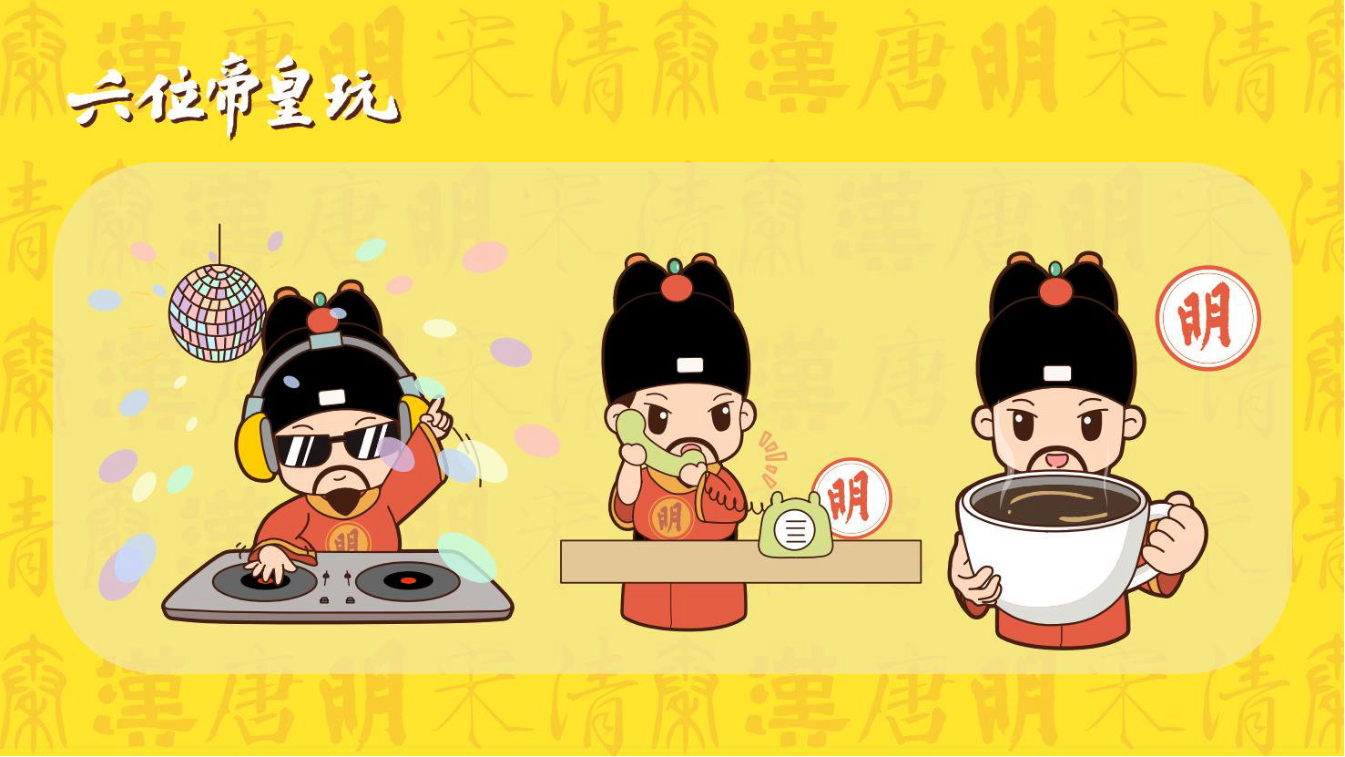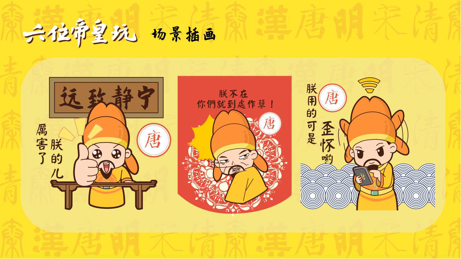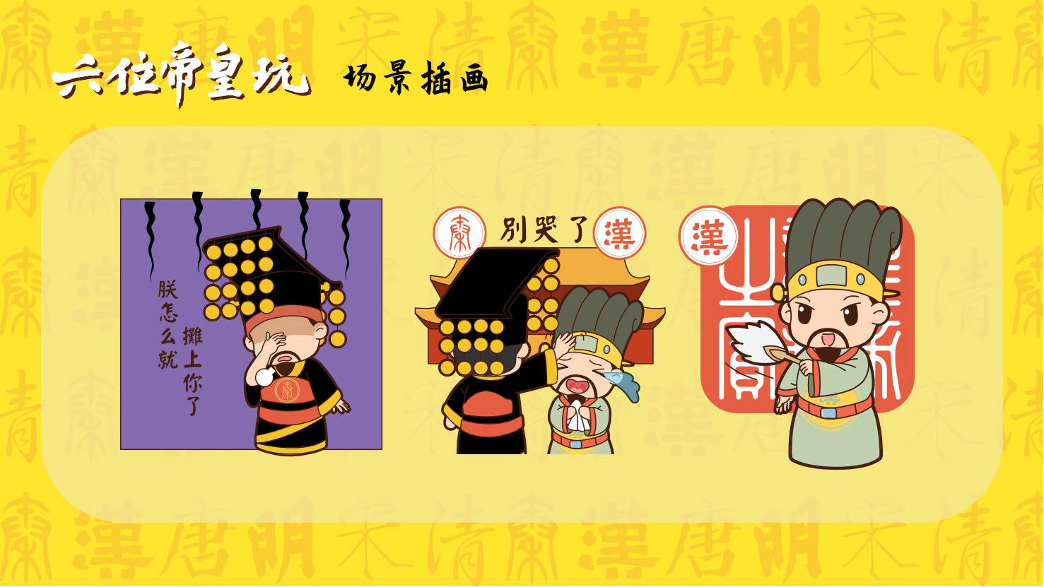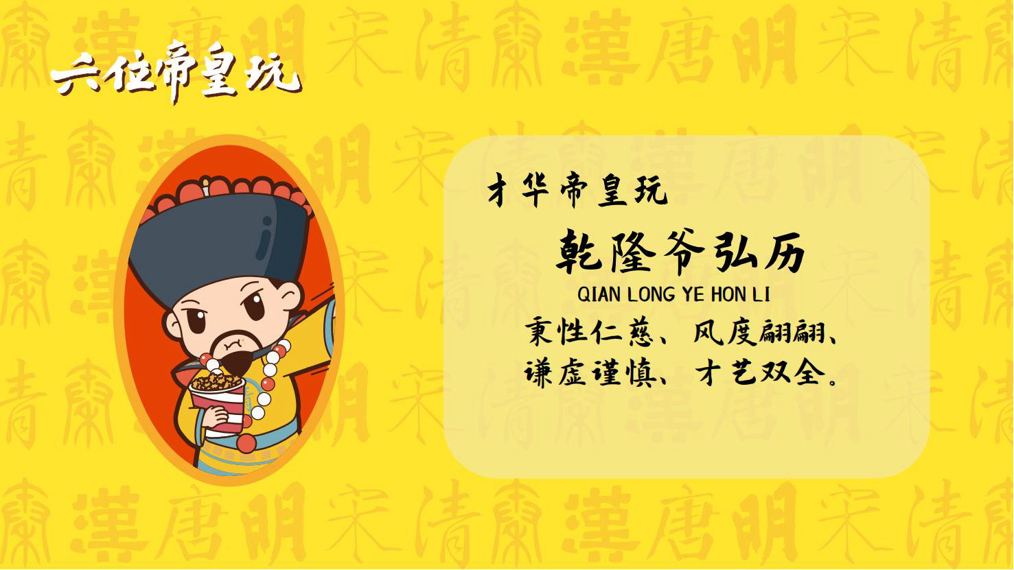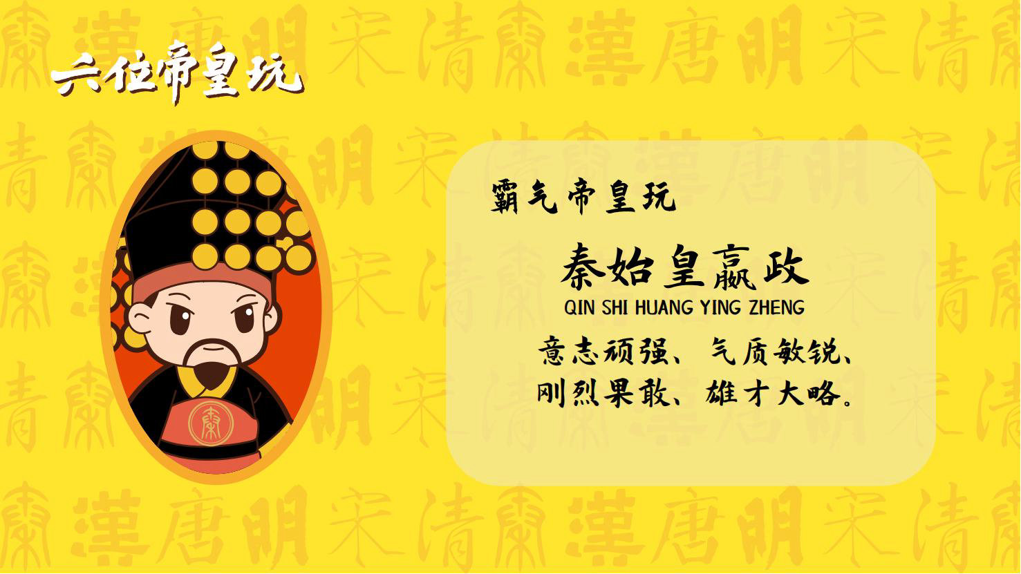 “六位帝皇玩”是卡通潮玩版的秦始皇、汉高祖、唐太宗、宋太祖、明成祖、乾隆爷。通过六位皇帝的历史借力国潮文化,向全球推广中国优秀传统文化。