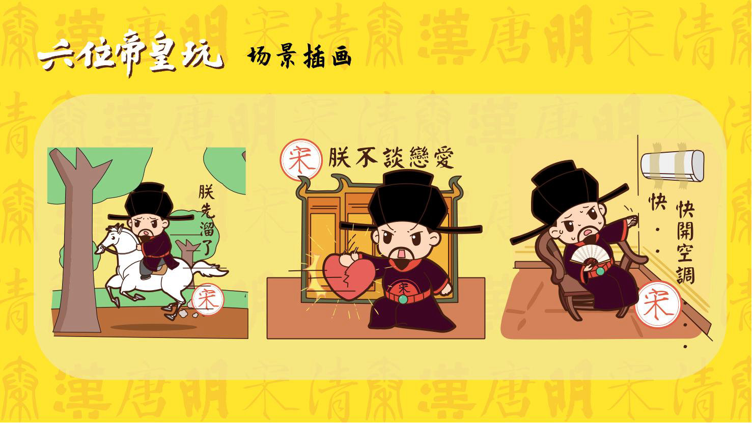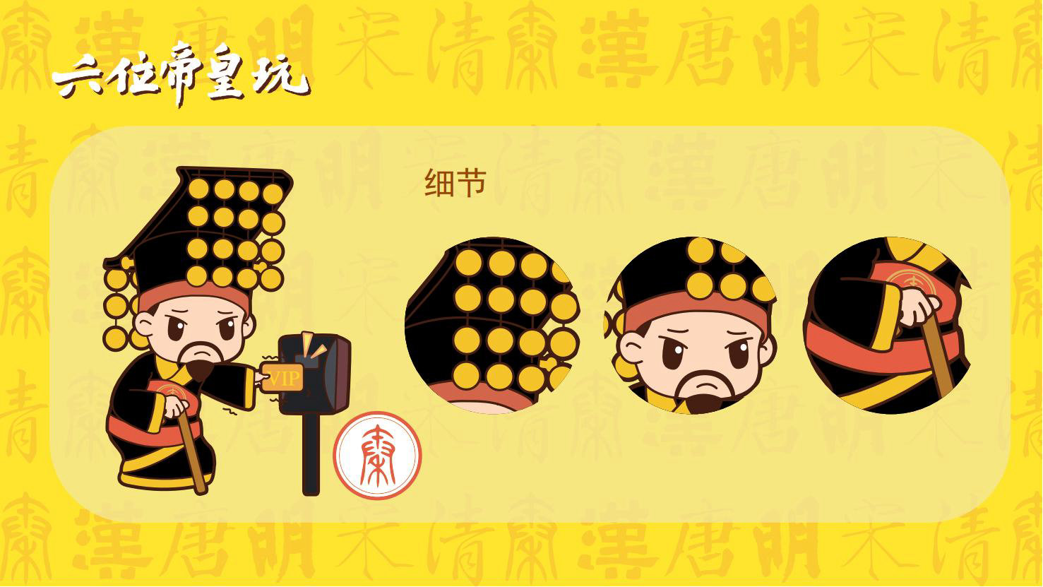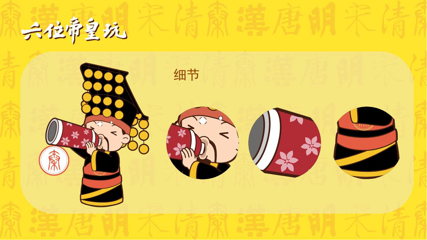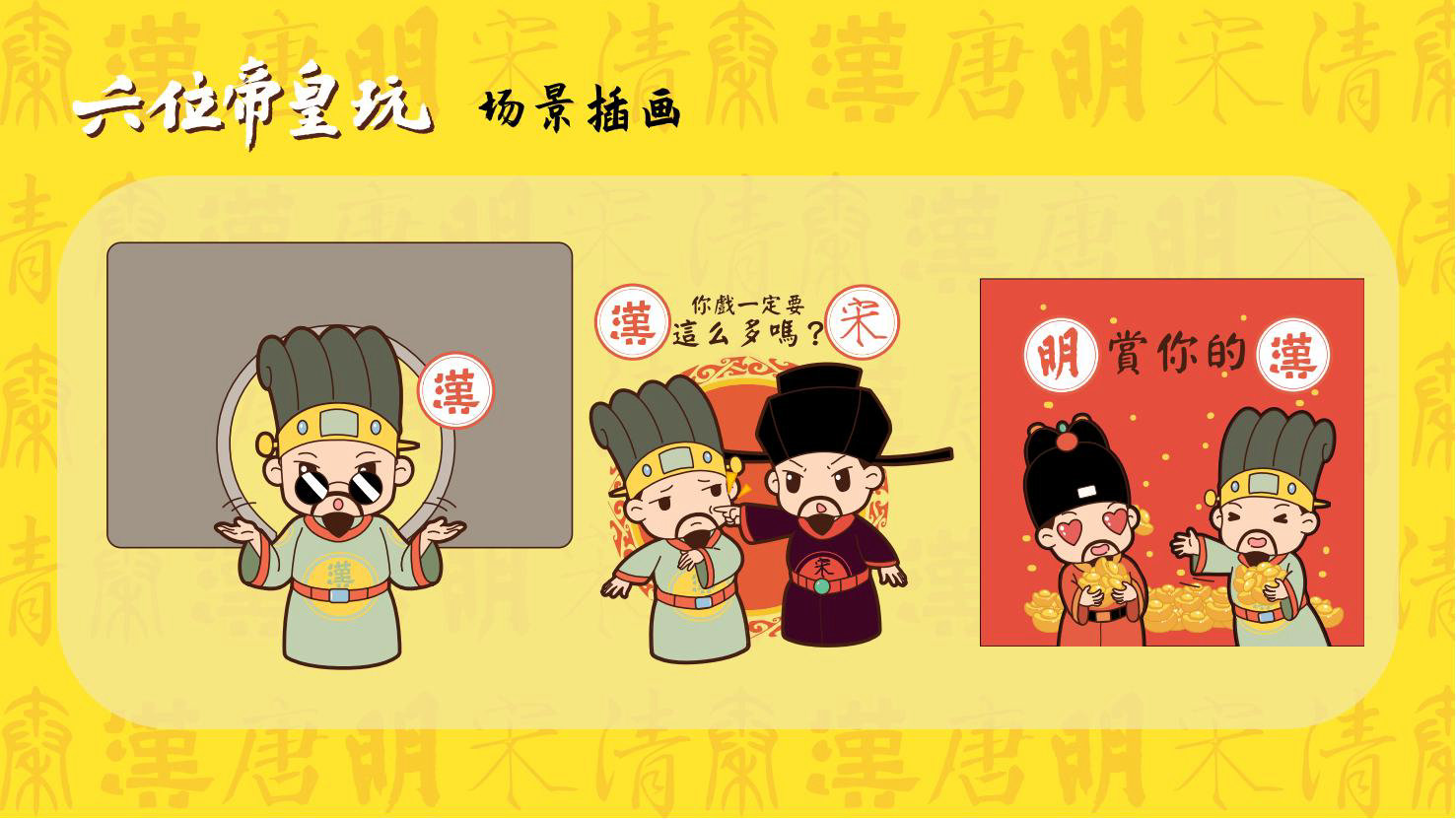 “六位帝皇玩”是卡通潮玩版的秦始皇、汉高祖、唐太宗、宋太祖、明成祖、乾隆爷。通过六位皇帝的历史借力国潮文化,向全球推广中国优秀传统文化。