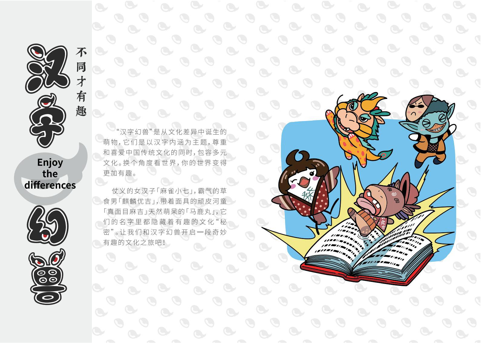 “汉字幻兽”是从文化差异中诞生的萌物,它们以汉字内涵为主题,尊重和喜爱中国传统文化的同时,包容多元文化。换个角度看世界,你的世界变得更加有趣。