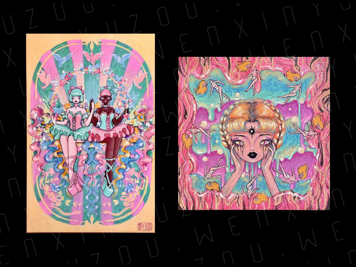 深圳⼈,芝加哥艺术学院纯艺术学⼠,曾任平⾯视觉设计师、艺术导师、娃娃妆师、⾃由插画师、服装搭配助教,现任设计师服装品牌合伙⼈。