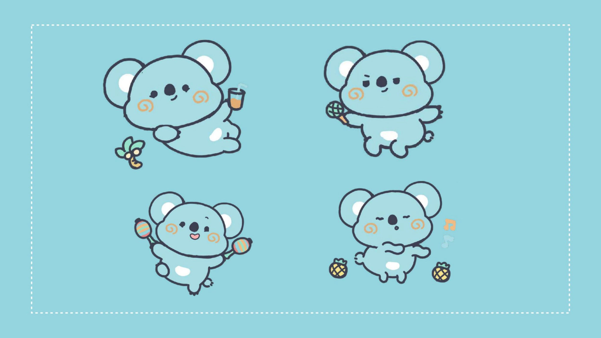 来自夏威夷的kola,口头禅“Hang-Loose” ,喜欢唱歌跳舞,一听到音乐就开始律动 ,是一只在果汁店打工的考拉,喜欢橙汁! 因为太可爱了经常被老板当作吉祥物招揽生意!