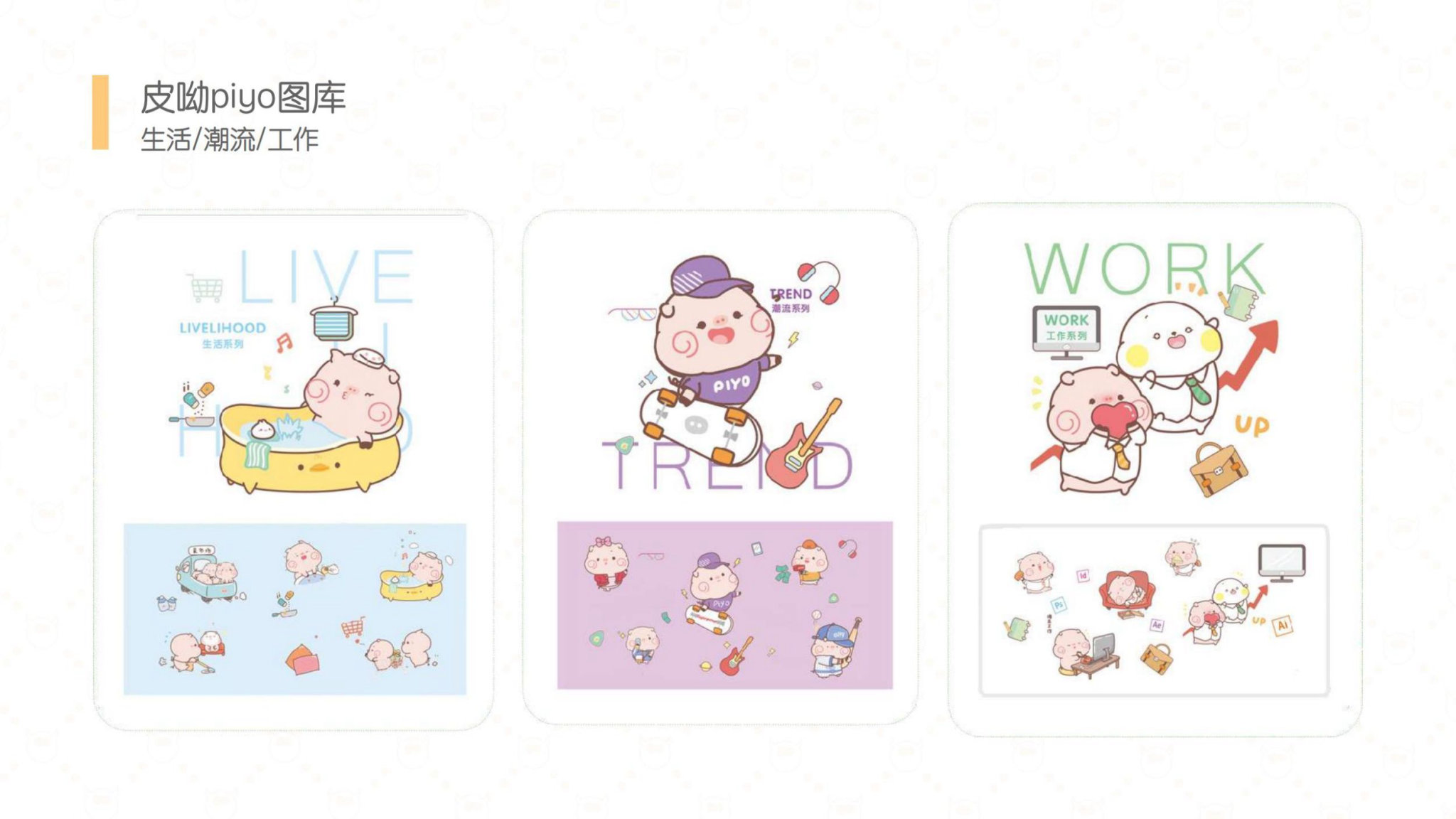 Piyo是只简单快乐的小猪猪,贪吃,贪睡,爱幻想 ;口头禅“生活总有一团糟的时候,吃好睡好总能过去呀~” ; 不管在什么时候都能给大家带来简单的快乐