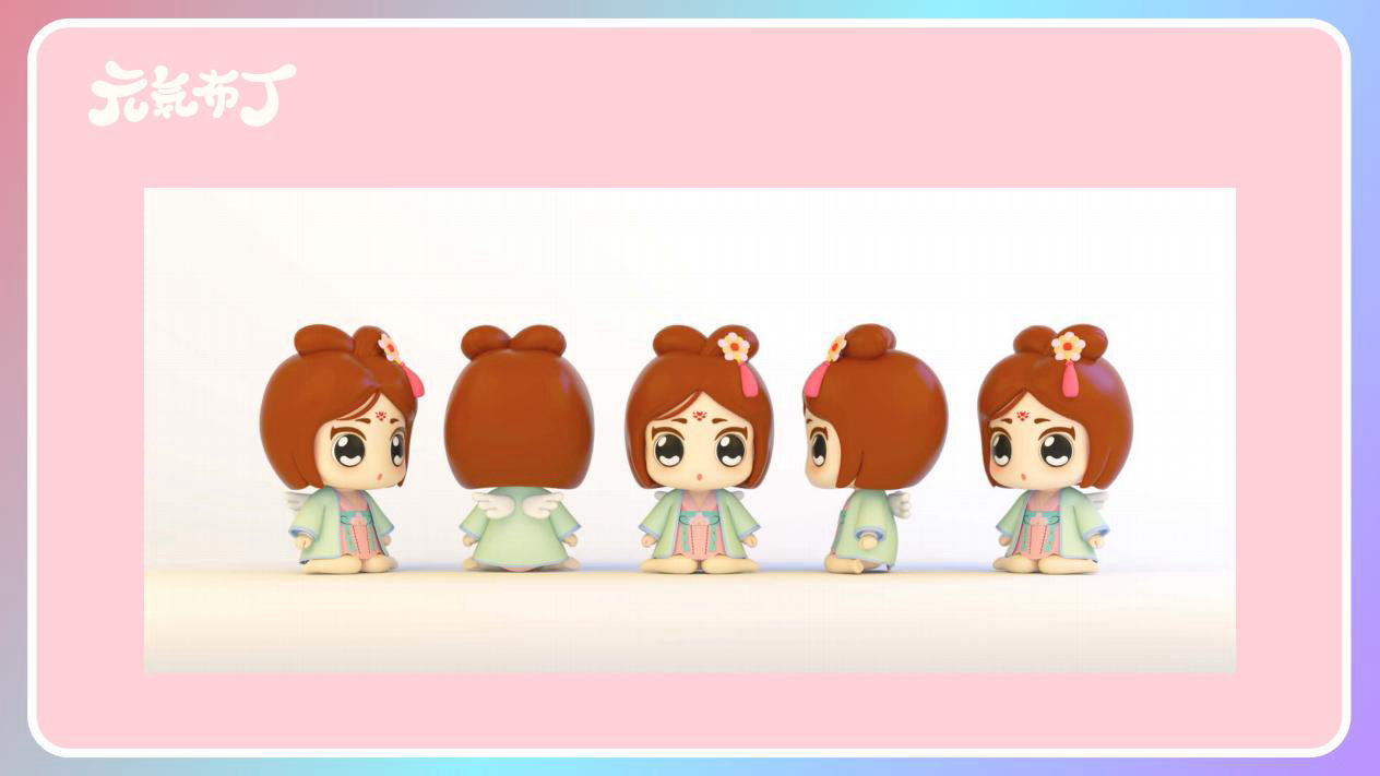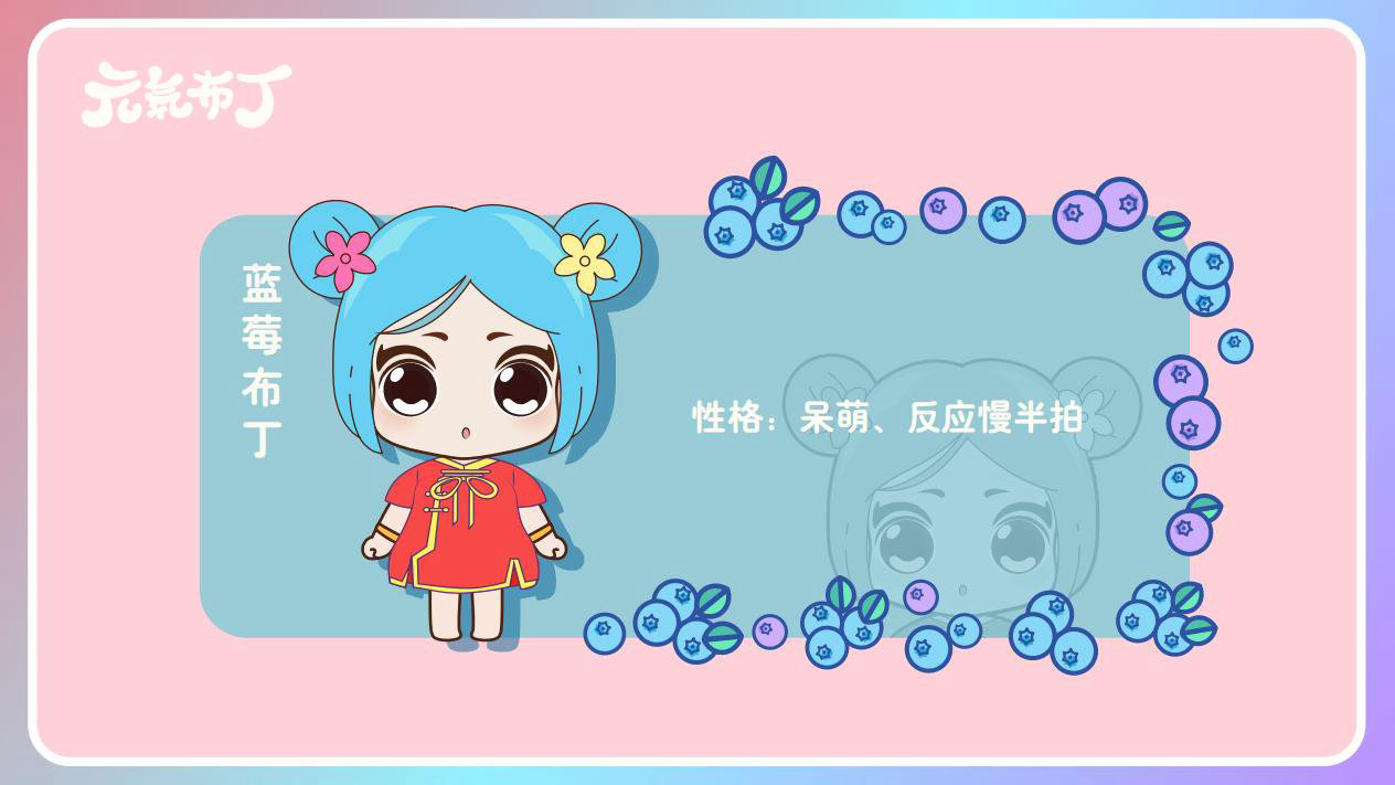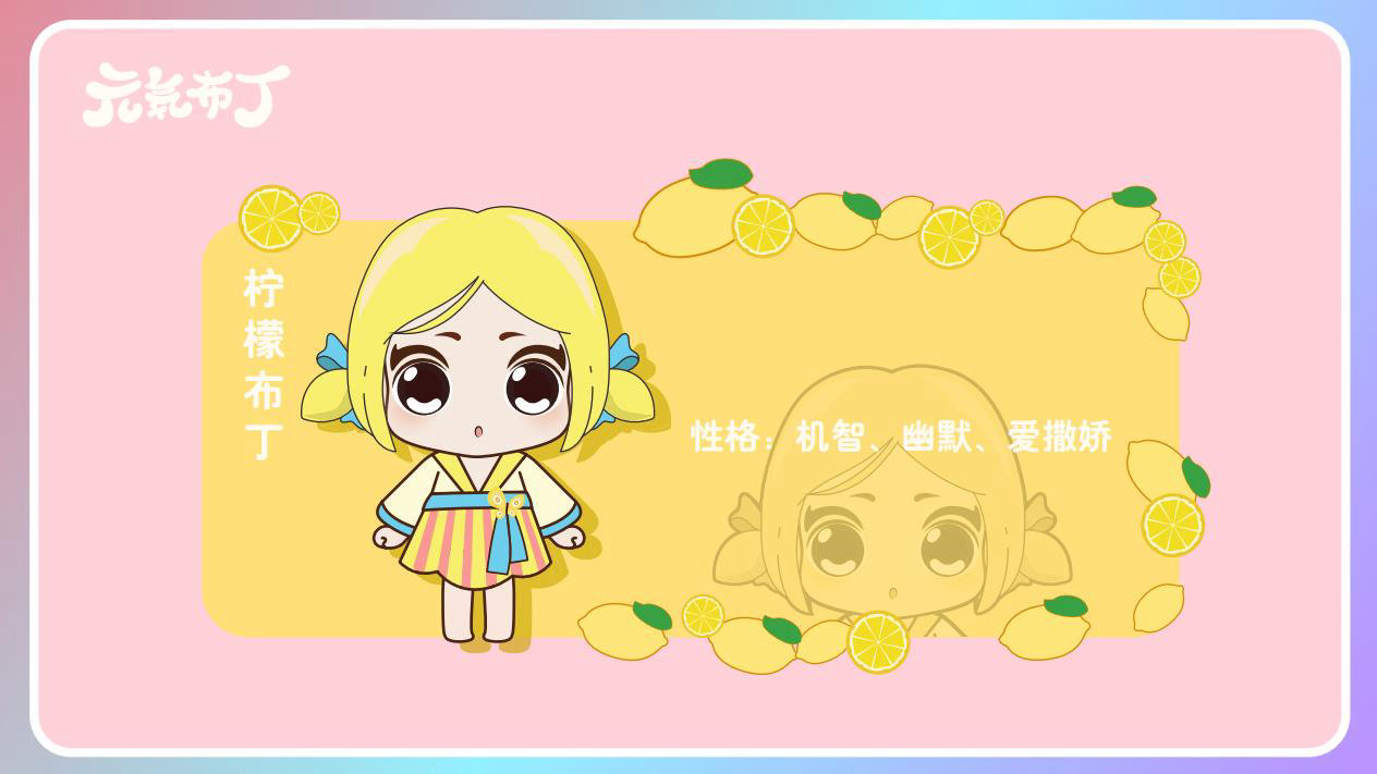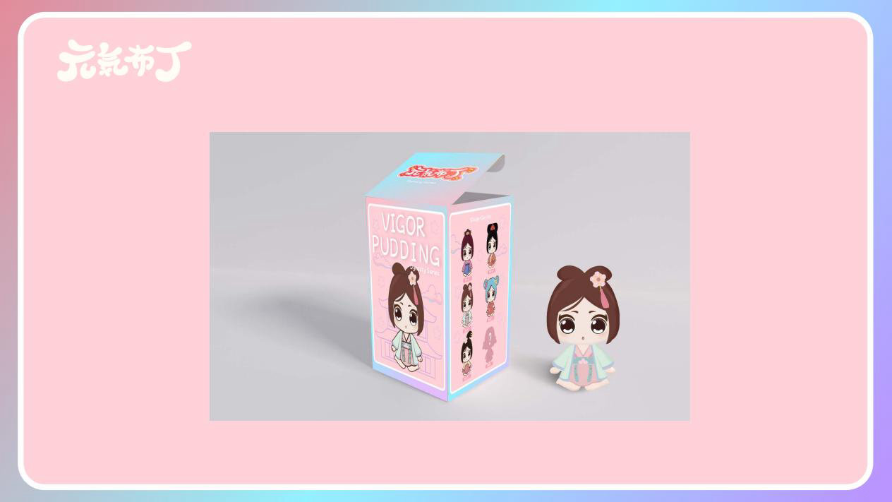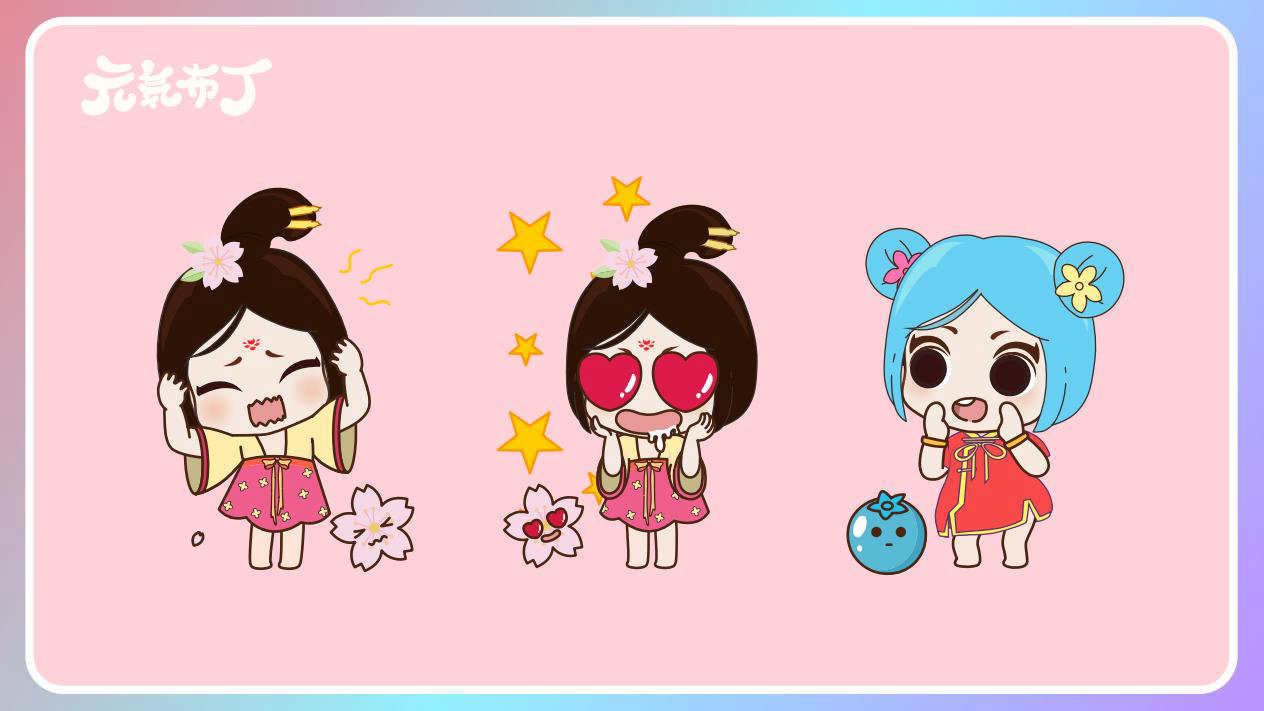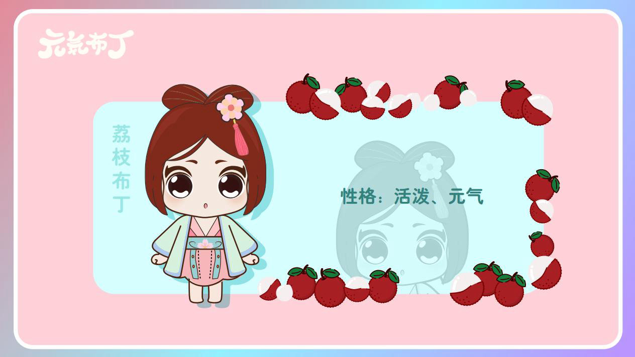元気布丁是由六个头身比接近1:1的Q版卡通形象组成的女生组合,蛾眉杏眼、樱桃小嘴,身穿中国古代传统服饰。整体配色鲜艳丰富,象征着少女的活力和元气;表情呆萌,惹人喜爱。目前共有六个形象,分别身着秦朝、汉朝、唐朝、宋朝、清朝、民国时期的服装,配以不同的发型和发饰。