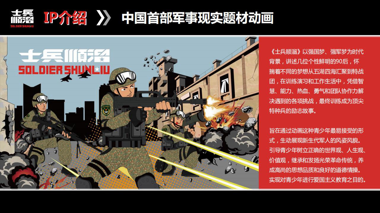 《士兵顺溜》以强国梦、强军梦为时代背景,讲述几位个性鲜明的90后,怀揣着不同的梦想从五湖四海汇聚到特战团,在训练演习和工作生活中,凭借智慧、能力、热血、勇气和团队协作力解决遇到的各项挑战,训练成为特种兵的励志故事。