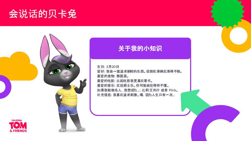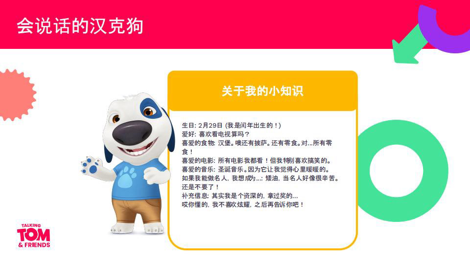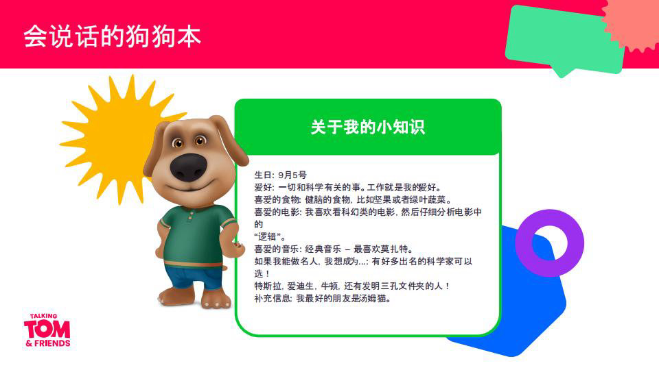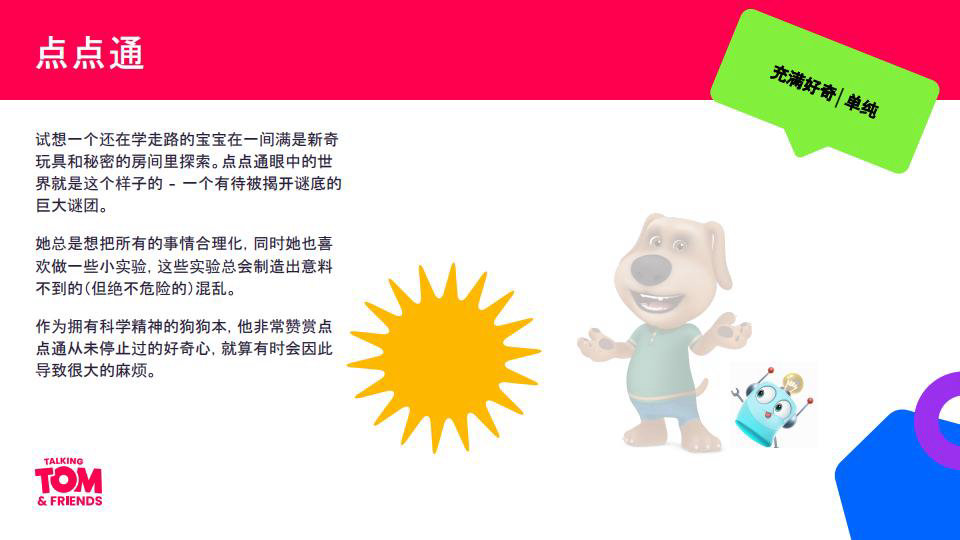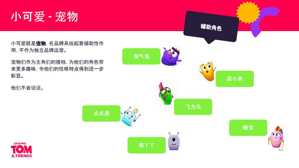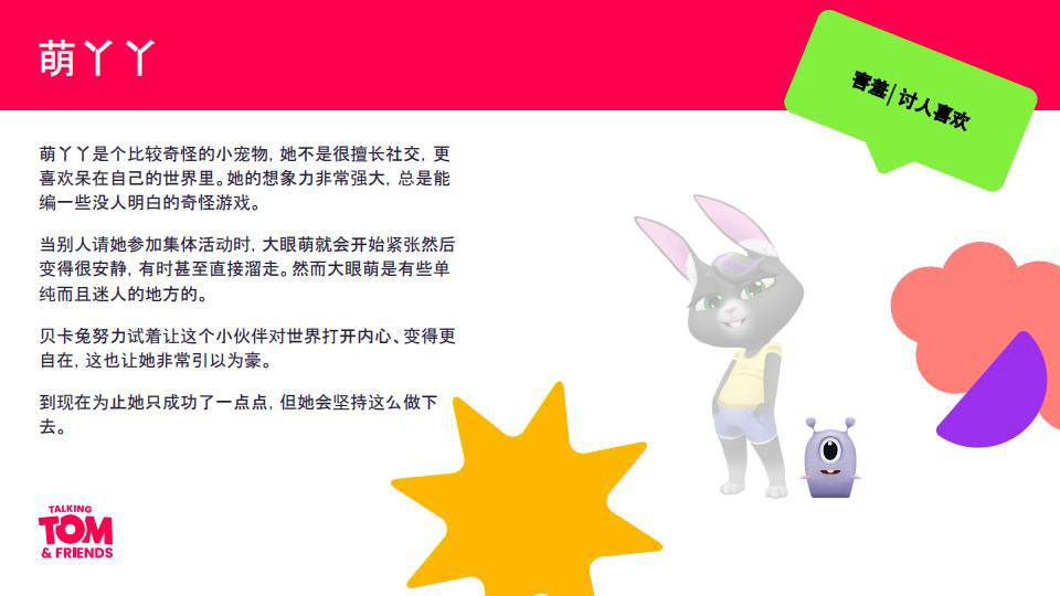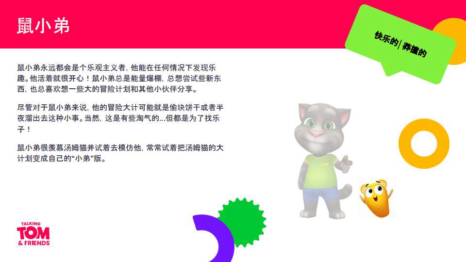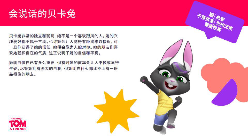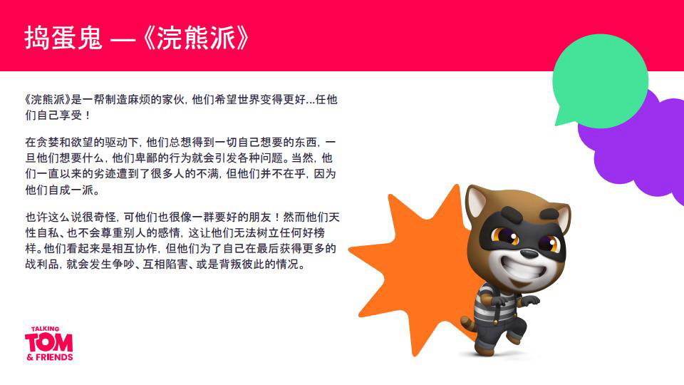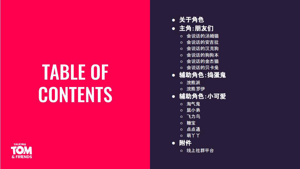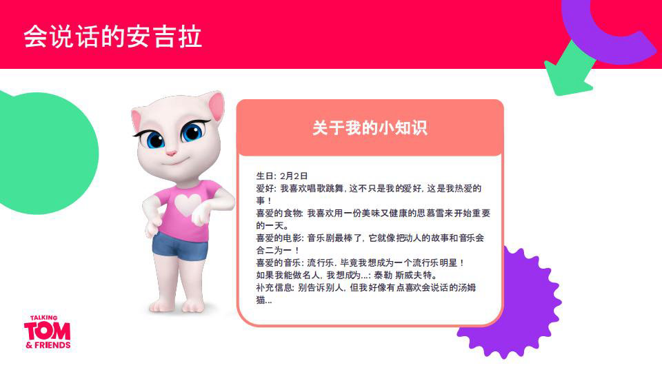 《会说话的汤姆猫家族》是一个以家庭为导向的娱乐品牌,共有六位拟人化的品牌主角,他们是彼此的朋友,相互分享滑稽逗趣的冒险和生活故事。